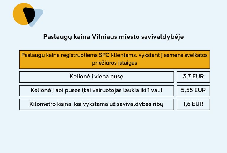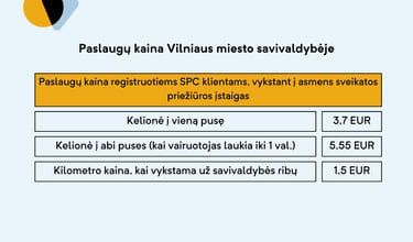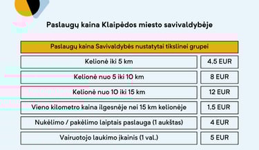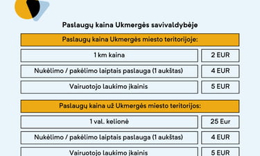 Informacija apie komercinių kelionių kainas teikiama tel. nr.: +37068744001.